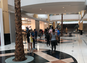 Despite only a few stores opening and shoppers still largely exercising caution, lines are already forming in mall common areas in front of popular retailers.